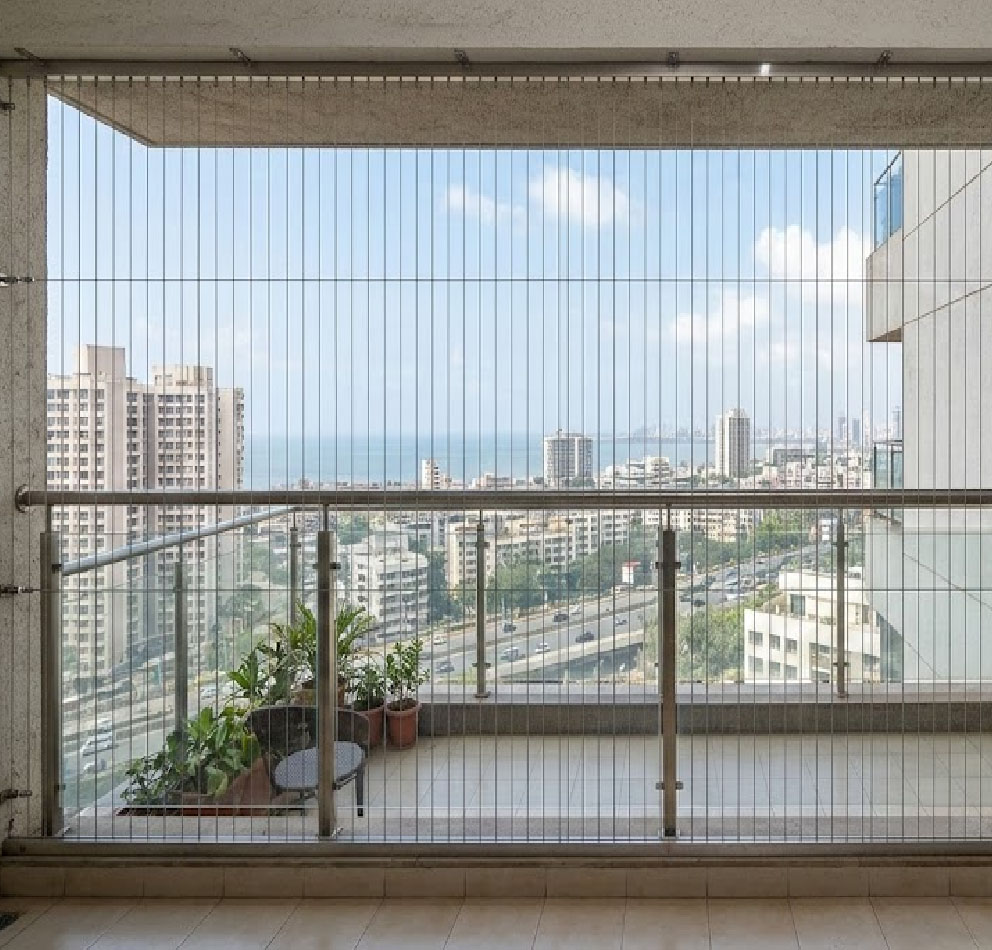 Ideal for balconies, windows, staircases, and high-rise apartments, our invisible grill installation enhances both safety and property value. Corrosion-resistant, low-maintenance, and built to last, our solutions offer peace of mind without blocking your beautiful view. Choose our professional invisible grill installation service for a secure, stylish, and long-lasting safety solution tailored to your needs.
